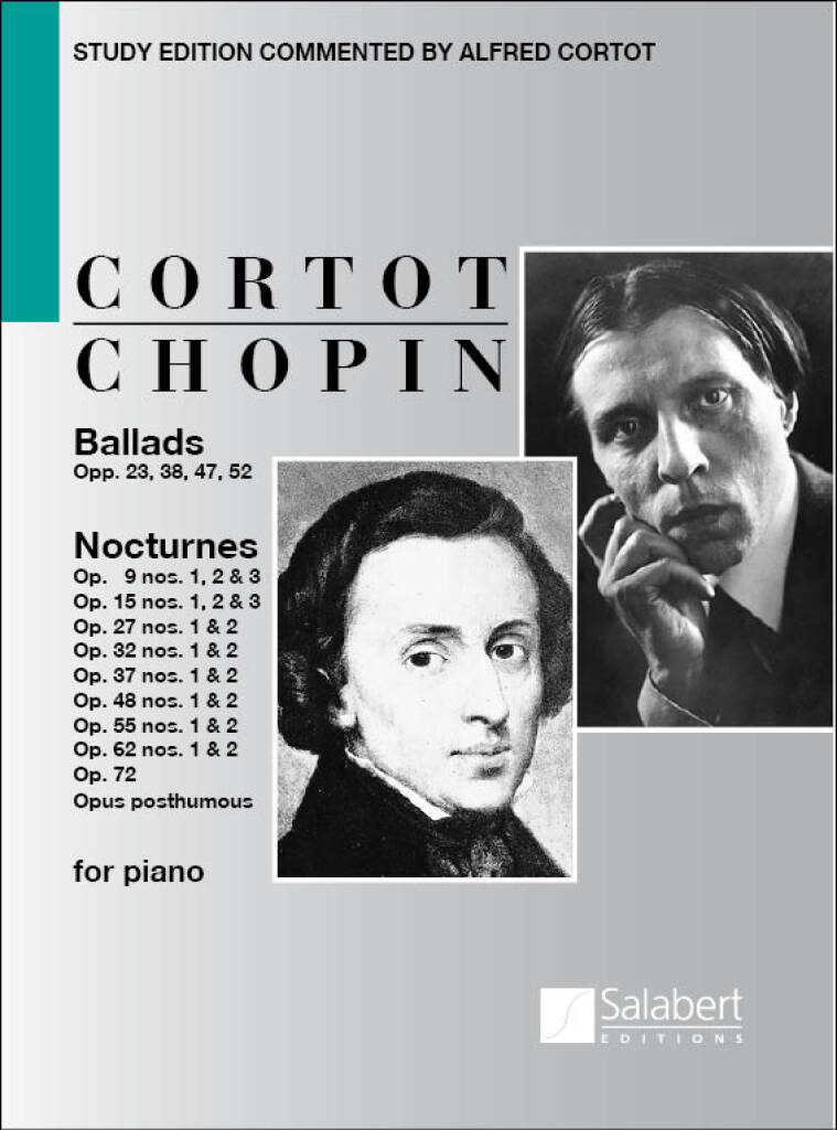Study edition, with commentary from Alfred Cortot in English. Contains: Ballade, opus 23 - Ballade, opus 38 - Ballade, opus 47 - Ballade, opus 52 - Nocturne, opus 90 n. 1 - Nocturne, opus 90 n. 2 - Nocturne, opus 90 n. 3 - Nocturne, opus 15 n. 1 - Nocturne, opus 15 n. 2 - Nocturne, opus 15 n. 3 - Nocturne, opus 27 n. 1 - Nocturne, opus 27 n. 2 - Nocturne, opus 32 n. 1 - Nocturne, opus 32 n. 2 - Nocturne, opus 37 n. 1 - Nocturne, opus 37 n. 2 - Nocturne, opus 48 n. 1 - Nocturne, opus 48 n. 2 - Nocturne, opus 55 n. 1 - Nocturne, opus 55 n. 2 - Nocturne, opus 62 n. 1 - Nocturne, opus 62 n. 2 -