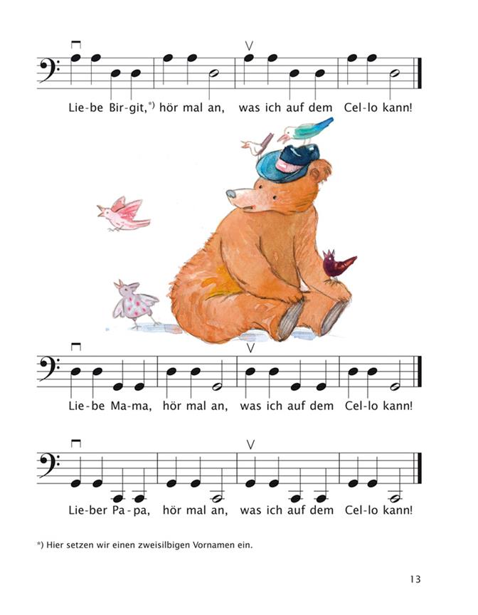 Vorwort Notenwerte und Zeichen Die leeren Saiten Saitenübergänge Die Rufterz mit dem 3. Finger Der Dreiklang Der 1. Finger Das Greifen auf verschiedenen Saiten Der 4. Finger Die Vorzeichen Die Tonleitern auf zwei Saiten Weitere Übungen, Lieder und Stricharten Neue Stricharten Gebundene Noten Der Portato-Strich