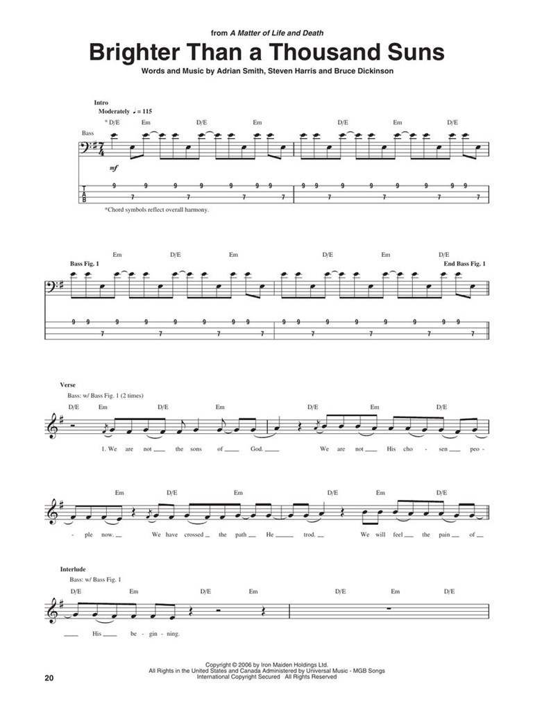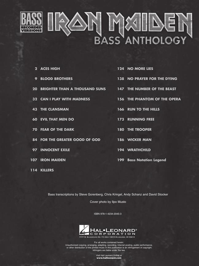 Partitions pour basse (tablatures et symboles d'accords) de l'anthology d'Iron Maiden.