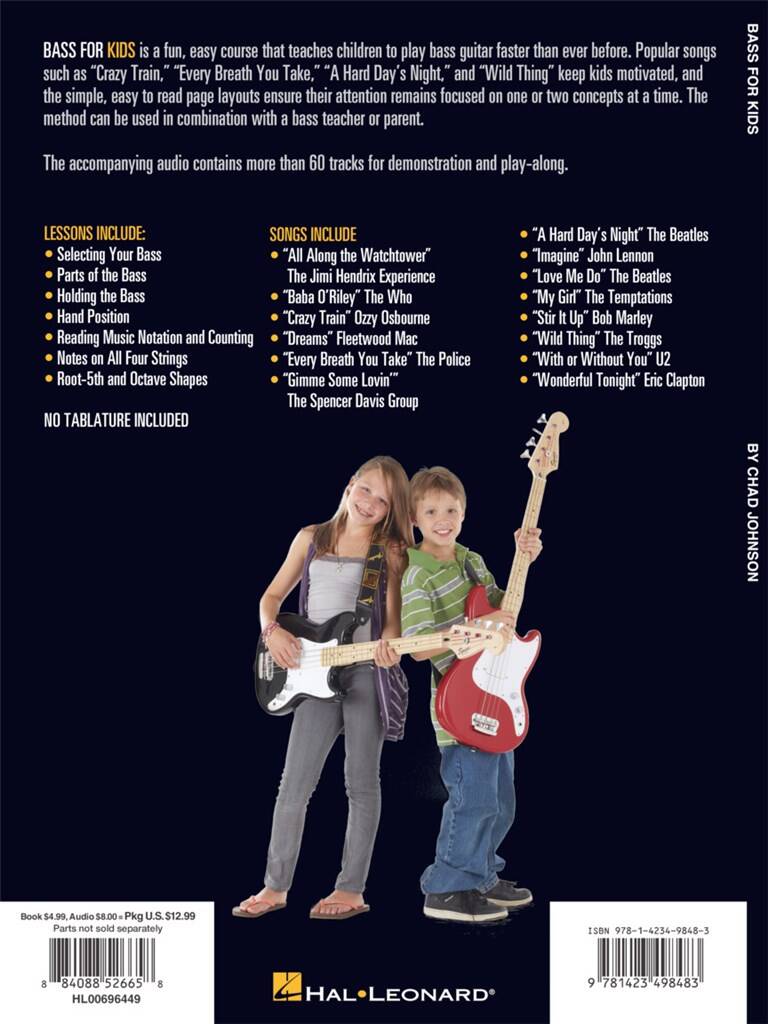 Bass for Kids est un cours amusant et facile qui apprend aux enfants à jouer de la basse plus vite que jamais. Des chansons populaires comme « Crazy Train », « Every Breath You Take », « A Hard Day’s Night » et « Wild Thing » maintiennent les enfants motivés, et la mise en page épurée et simple garantit que leur attention reste concentrée sur un concept à la fois. La méthode peut être utilisée en combinaison avec un professeur de basse ou un parent, même s’ils n’ont jamais reçu de formation musicale eux-mêmes. Les sujets des leçons incluent le choix d’une basse, la tenue de la basse, la position de la main, la lecture de la notation musicale et le comptage, et plus encore.