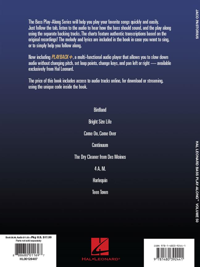 La série Bass Play-Along a été créée pour vous aider à jouer vos chansons préférées rapidement et facilement. Il suffit de suivre l’onglet, d’écouter l’audio pour entendre comment la basse doit sonner, puis de jouer en utilisant les pistes d’accompagnement séparées. Ce volume comprend 8 chansons de Jaco Pastorius.