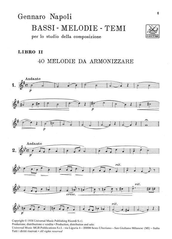 Bassi – Melodie – Temi, Per Lo Studio Della Composizione NAPOLI GENNARO