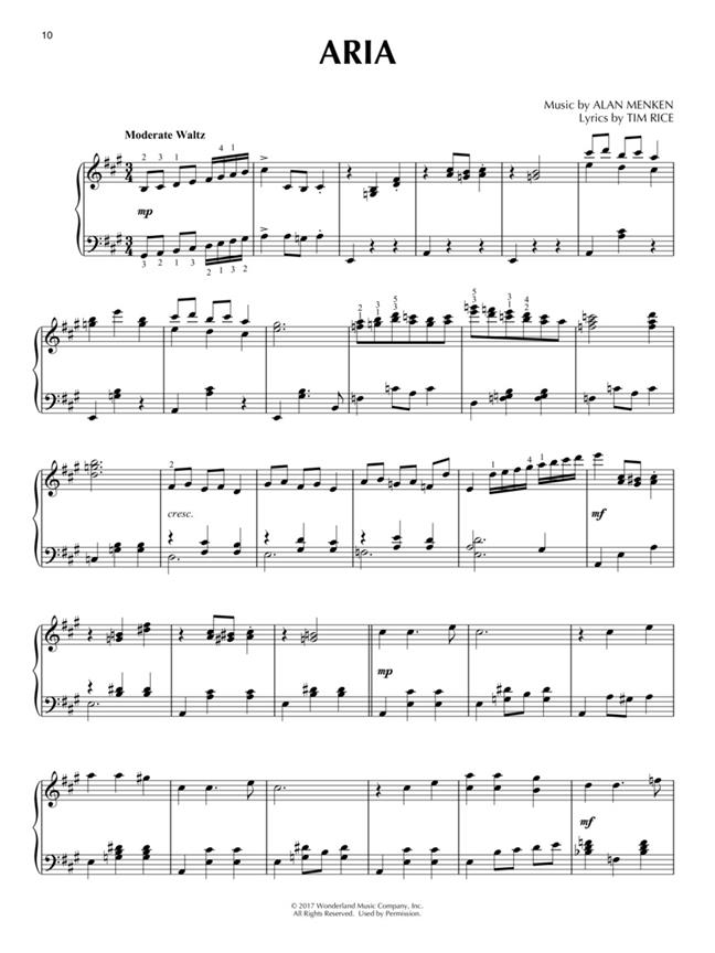 13 piano solo arrangements from the soundtrack to the new live action film Beauty and the Beast featuring the acclaimed music of Alan Menken, Tim Rice and Howard Ashman. Includes: Aria - Be Our Guest - Beauty and the Beast - Beauty and the Beast Overture - Belle - Days in the Sun - Evermore - Gaston - How Does a Moment Last Forever - The Mob Song - Prologue - Prologue Pt. 2 - Something There.