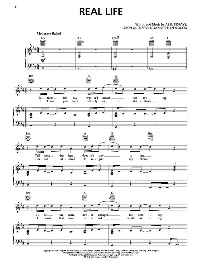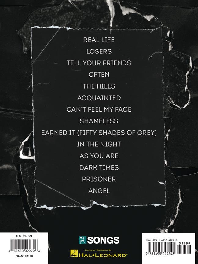Matching folio to the chart-topping break-out album featuring 14 tracks: Acquainted - As You Are - Angel - Can't Feel My Face - Dark Times - Earned It (Fifty Shades of Grey) - The Hills - Losers - Prisoner - Real Life - Shameless - Tell Your Friends.