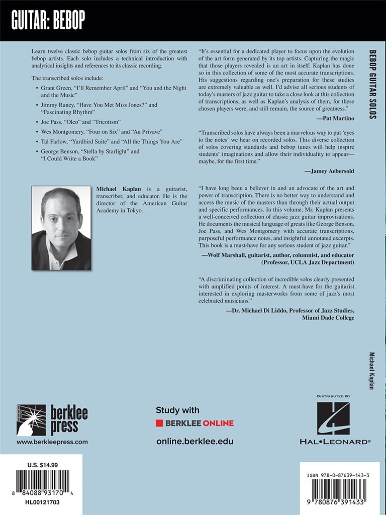 Learn twelve classic Bebop Guitar Solos with the guidance of Michael Kaplan. This book contains solos for songs by six of the greatest Bebop artists, complete with technical introductions and analytical insights.