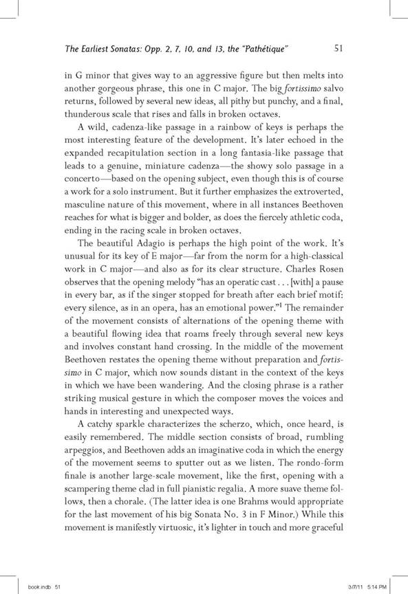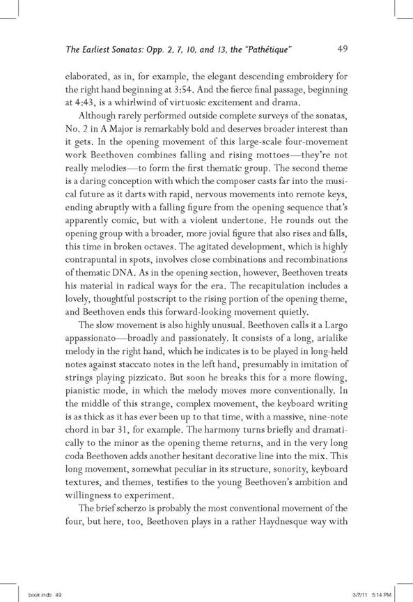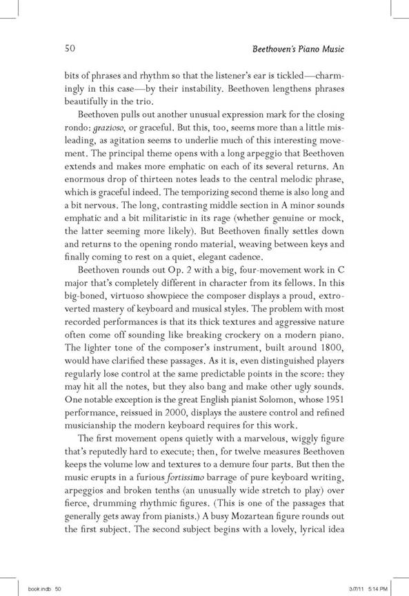 En plus de l'intégrale des sonates, Lederer prend également le lecteur à travers les plus significatifs des variations. Le plus grand est le Diabelli, décollage monumentale de Beethoven sur un thème banal, mais plus trois ensembles, les 32 Variations en ut mineur, les Variations sur un thème original, op. 34, et le "Eroica" Variations, op. 35, sont également de la plus haute qualité. Et les Bagatelles, Opp. 33, 119 et 126, sont courts, mais forts des études qui montrent différents aspects de la personnalité musicale de Beethoven. Enfin, Lederer aborde les cinq concertos pour piano en détail, montrant l'influence des modèles sublimes de Mozart dans les trois premiers concertos, avec Beethoven hardiment trouver sa propre voix avec les Concertos aimé quatrième et cinquième. Le livre est livré avec un CD de Naxos performances contenant du pianiste Jeno Jando qui illustrent le texte.