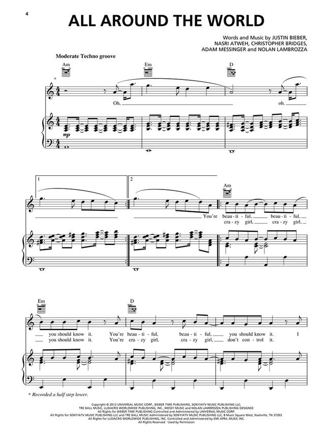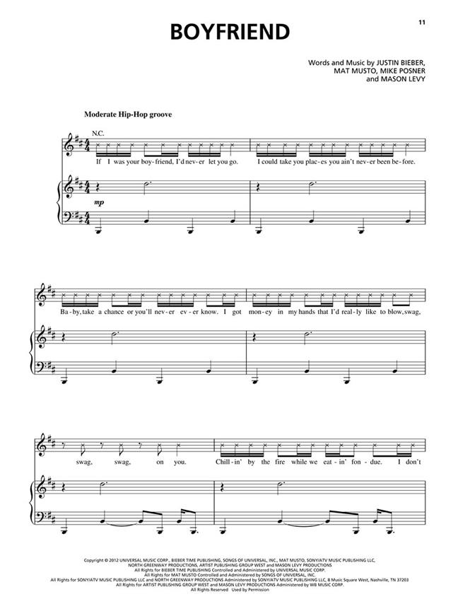 Un songbook rempli Pop, contenant de la musique de feuille de palmarès 2012 Album de Justin Bieber, Believe.