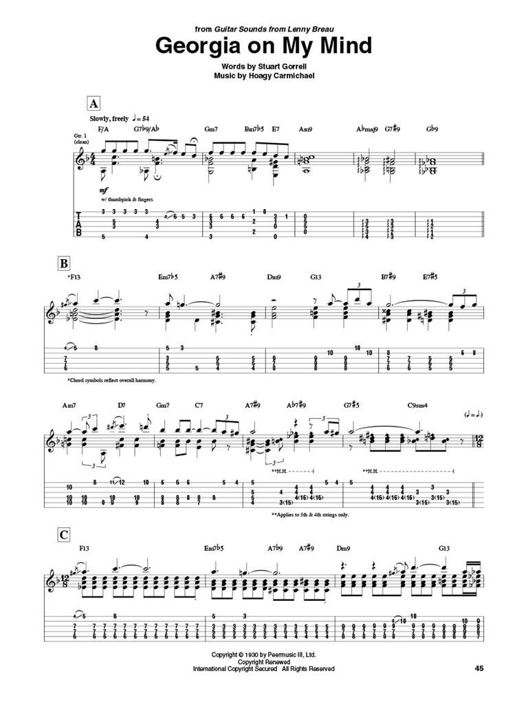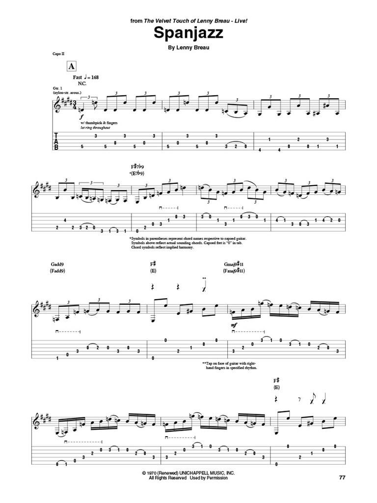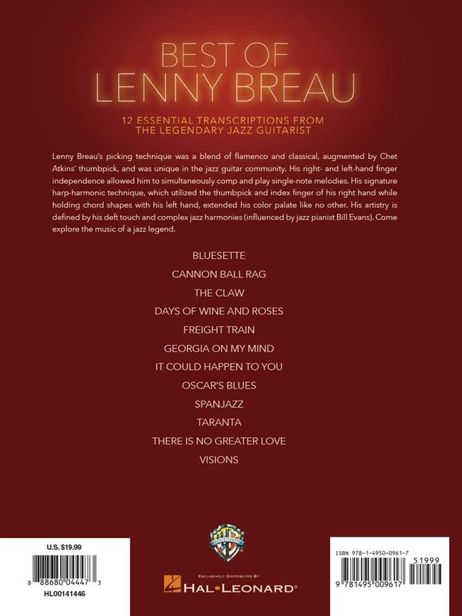 Ce folio présente 12 transcriptions note par note de l’impressionnant et complexe jeu de guitare de Breau au cours de sa carrière. Ses titres incluent des compositions originales de Breau et ses arrangements uniques de standards : Bluesette · Cannon BallRag · La Griffe · Jours de vin et de roses · Train de marchandises · La Géorgie dans mon esprit · Ça pourrait t’arriver · Le blues d’Oscar · Spanjazz · Taranta · Il n’y a pas de plus grand amour · Des visions.