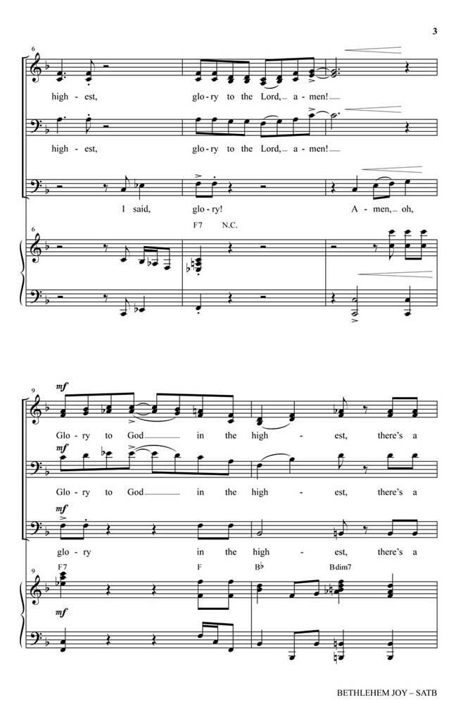 Utilisations : Noël, Réveillon de Noël Écritures : Isaïe 60:1, Luc 2:14 Dansant des pages de cet octavo, voici un morceau qui est un cri de louange rempli d’esprit, garanti pour animer votre musique de Noël ! Écrit dans un style gospel étincelant, les chanteurs sont mis en valeur par des harmonies intéressantes et des rythmes énergisants. Une fin joyeuse pour un concert ou une cérémonie de Noël !