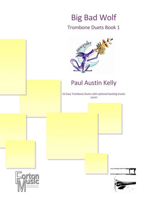 15 duets for beginner trombonists My original idea for the BIG BAD WOLF series was to offer teachers and students the opportunity to play duets. The accompanying backing tracks fill out the ensemble in a motivating, enjoyable way, whilst teaching students the discipline of rhythmic and harmonic structure. The two trombone parts are usually played subtly in the backing track just for reference and support. There are both treble and bass clef versions included here. Vol. 1 is for the beginning trombone player, and although the level of difficulty increases from the beginning to the end of the book, the student parts still more or less follow the ABRSM and Trinity College guidelines for Grades 1 and 2.