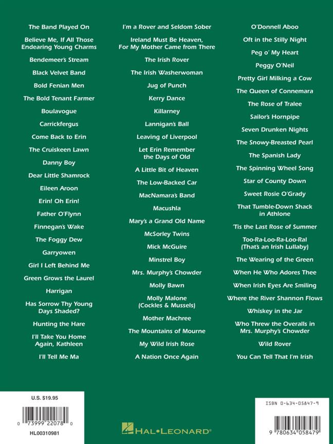 75 grandes chansons de chansons folkloriques à Tin Pan Alley favoris, y compris " Danny Boy ", " The Irish blanchisseuse ", " Jug de Punch ", " Molly Malone " et ' Peg o'My cardiaque. Arrangé pour voix et piano (avec les symboles de corde de guitare en boîte).