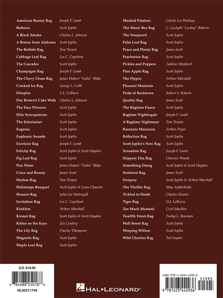 Plus de soixante y compris les Solos de Piano de Ragtime classique : Rag American Beauty, The Winners facile, The Entertainer, chaton sur The Keys, Maple Leaf Rag, Twelfth Street Rag.