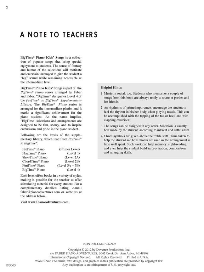 Pianistes intermédiaires aimeront cette collection amusante de chansons pour enfants préférés ", conçu pour" se montrer "leurs compétences pianistiques. Une grande variété de styles et de sons permettre aux étudiants de recevoir famille et amis avec des performances expressives.