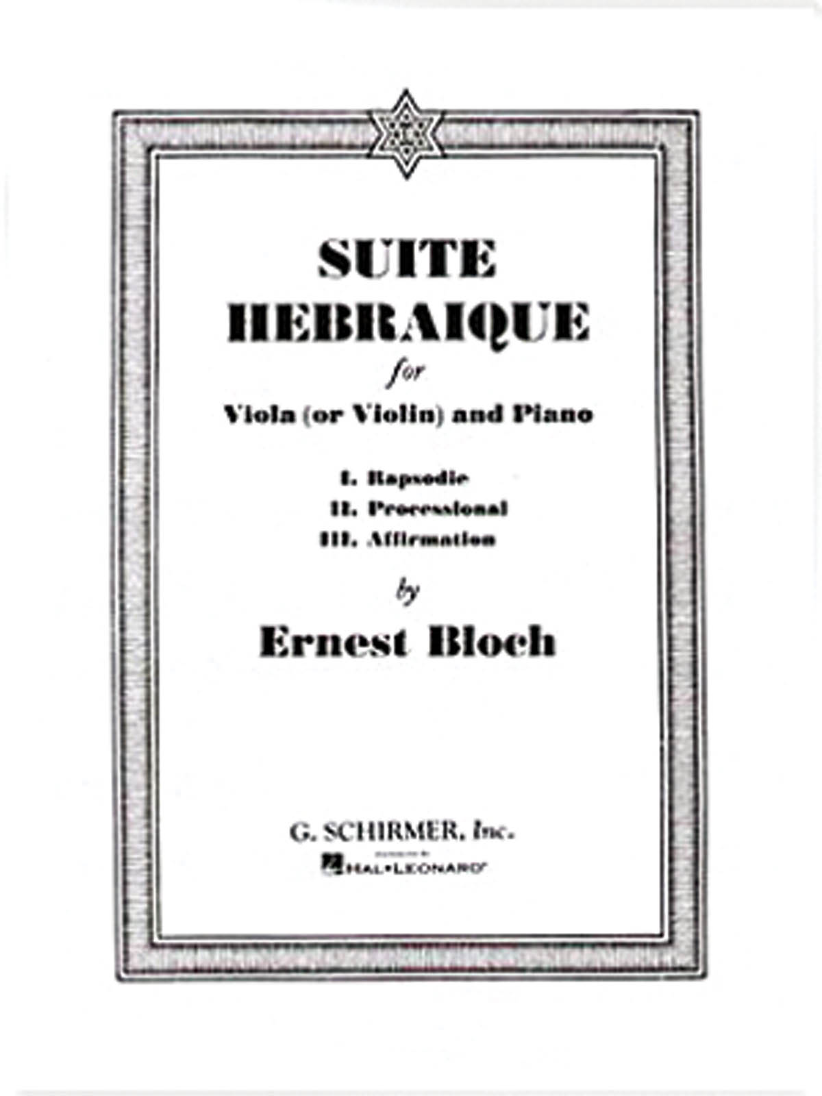 The Suite Hebraï que draws on traditional Jewish sources, such as the sound of the shofar's call, as Bloch explored his Judaic heritage. The first movement is forceful, with barely repressed emotion. A march rhythm and a passionate theme from the viola characterize the second movement, titled Processional. The finale, Affirmation, opens and closes with a full-throated theme over a dance-like, lilting rhythm, framing a sweet, graceful central section. Includes parts for Viola and Violin.