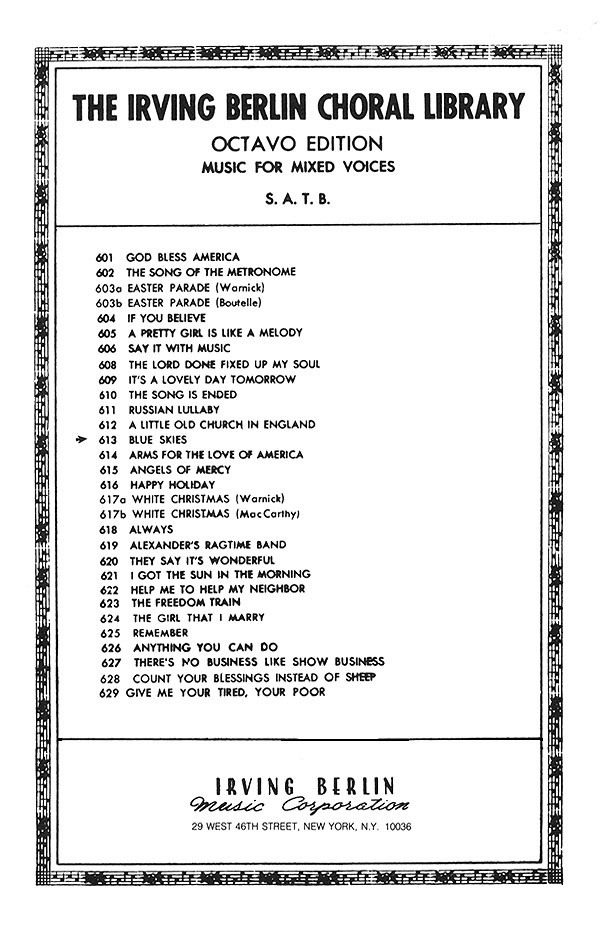 Blue Skies. SATB Accompanied BERLIN IRVING