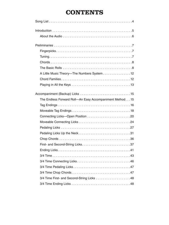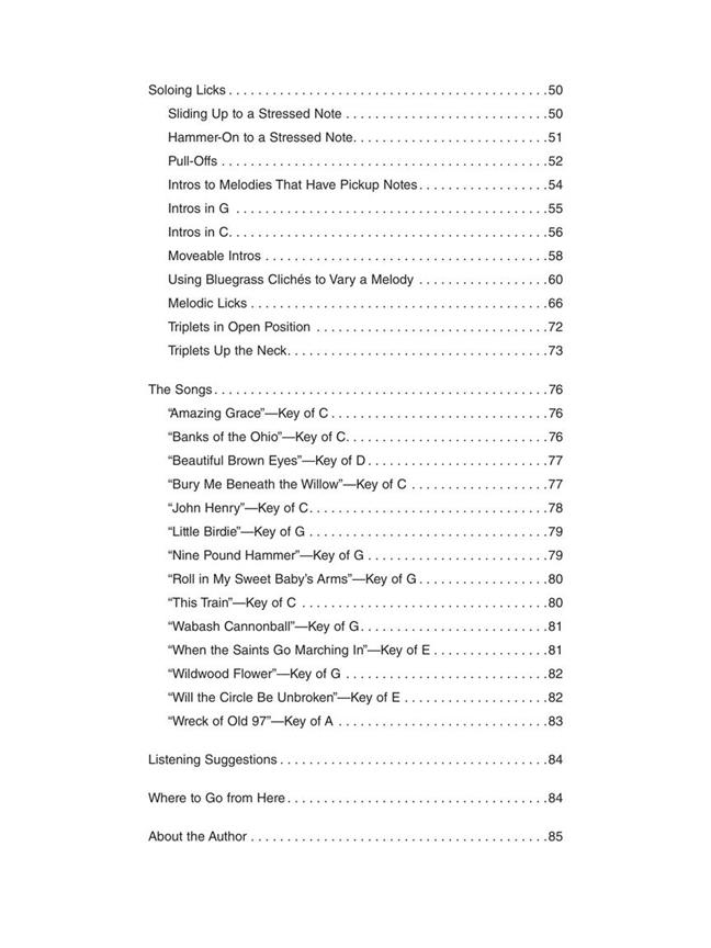 This encyclopedia of licks you need to know to play 5-string bluegrass banjo includes accompaniment (backup) licks, soloing licks, as well as basic music theory, the Numbers system, listening suggestions, and many complete solos, plus 119 audio tracks available online for download or streaming to help you learn how and when to play the licks. 14 bluegrass standards are used as examples showing how to apply the licks: Amazing Grace · Bury Me Beneath the Willow · John Henry · Little Birdie · Nine Pound Hammer · Roll in My Sweet Baby's Arms · This Train · Wabash Cannonball · When the Saints Go Marching In · Will the Circle Be Unbroken · and more. Audio is accessed online using the unique code inside the book and can be streamed or downloaded. The audio files include PLAYBACK+, a multi-functional audio player that allows you to slow down audio without changing pitch, set loop points, change keys, and pan left or right.