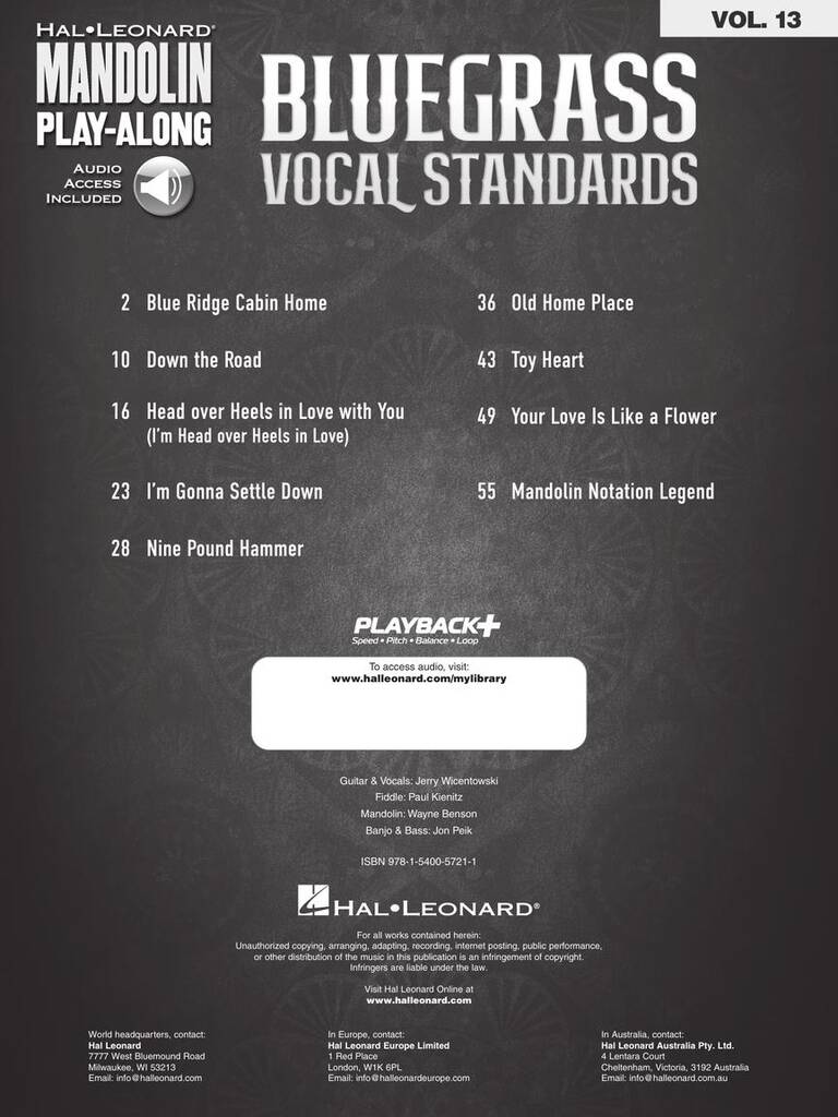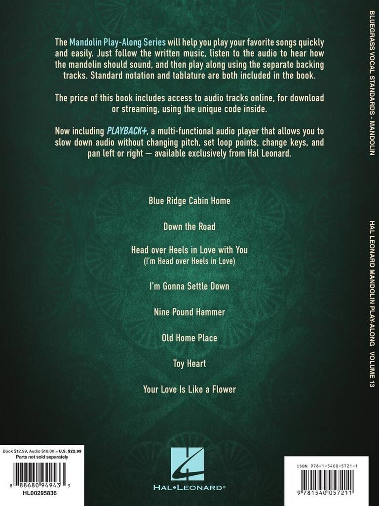 The Mandolin Play-Along Series will help you play your favorite songs quickly and easily. Just follow the written music, listen to the audio to hear how the mandolin should sound, and then play along using the separate backing tracks. Standard notation and tablature are both included in the book. The price of this book includes access to audio tracks online, for download or streaming, using the unique code inside.
