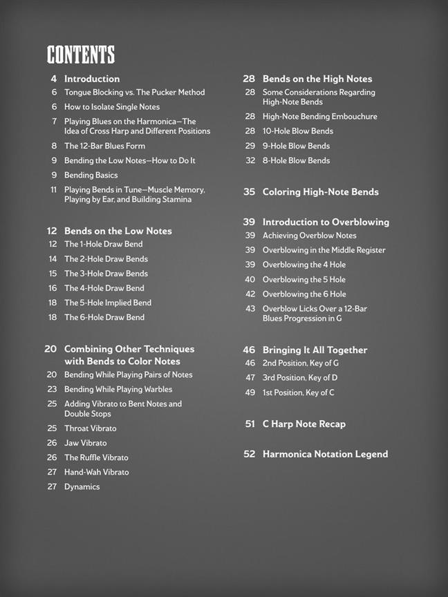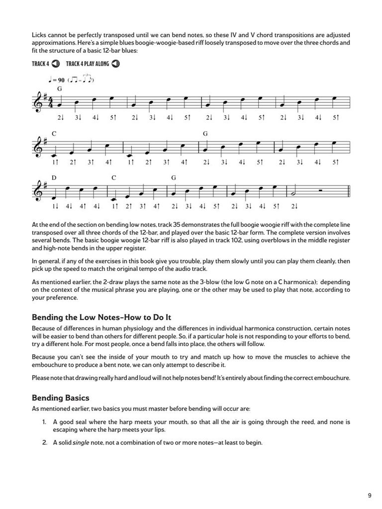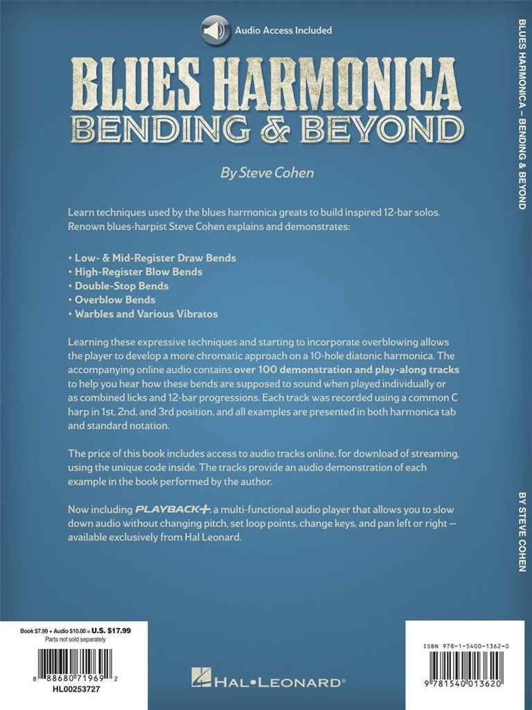 Learn techniques used by the blues harmonica greats to build inspired 12-bar solos! Renowned blues harpist Steve Cohen explains and demonstrates topics including: low and mid-register draw bends - high-register blow bends - double-stop bends - overblow bends - warbles and various vibratos - and more. Includes over 100 demo and play-along tracks online for download or streaming. Each track was recorded using a common C harp in 1st, 2nd and 3rd position, and all examples are presented in both harmonica tab and standard notation.
