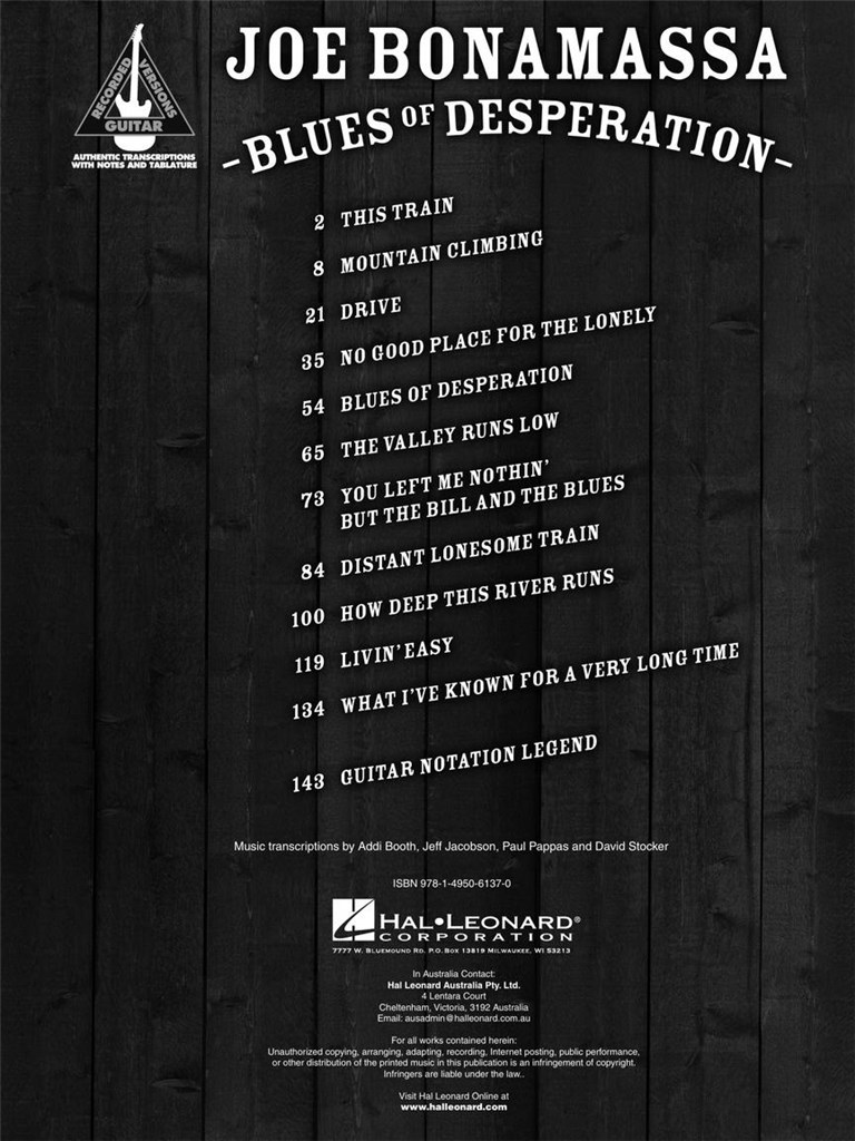 Blues Of Desperation – Guitar Recorded Versions BONAMASSA JOE