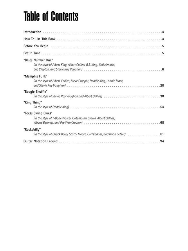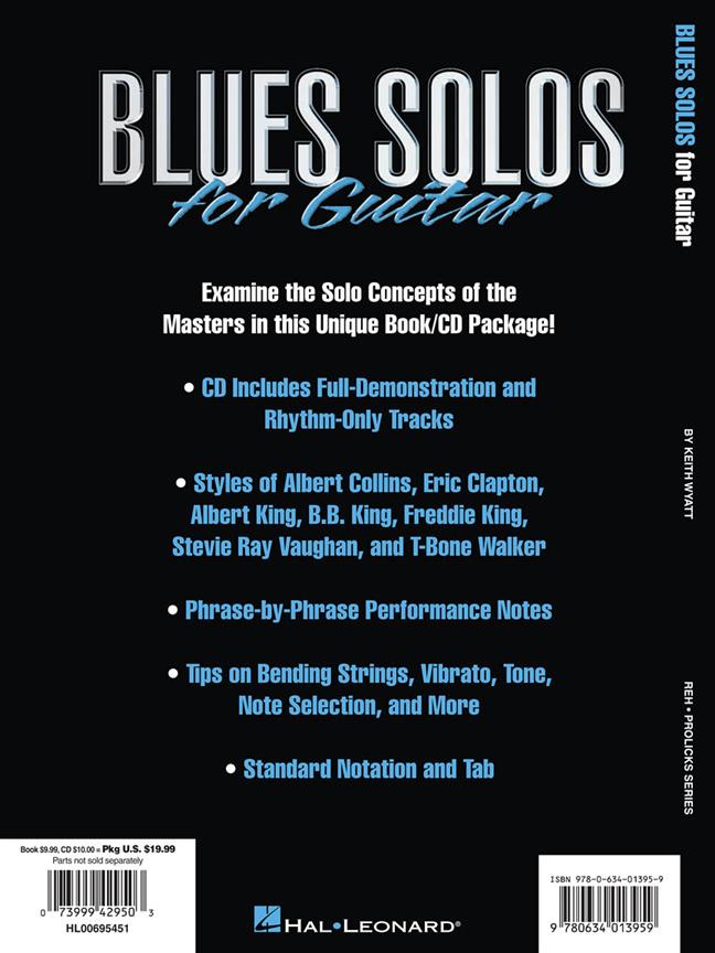 Apprendre la guitare dans les styles de Albert Collins, Eric Clapton, Albert King, B.B. King, Freddie King, Stevie Ray Vaughan et t-Bone Walker ! Ce pack unique livre/CD examine les concepts solos de chacun de ces maîtres. Le CD comprend plein démos et pistes rythmique uniquement, et le livre comprend des notes de la phrase par phrase performance et conseils sur la flexion des chaînes, vibrato, ton, sélection de note et beaucoup plus. Comprend des notes et tablature. Un must pour tout guitariste blues !