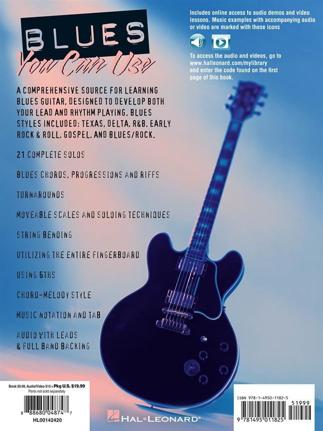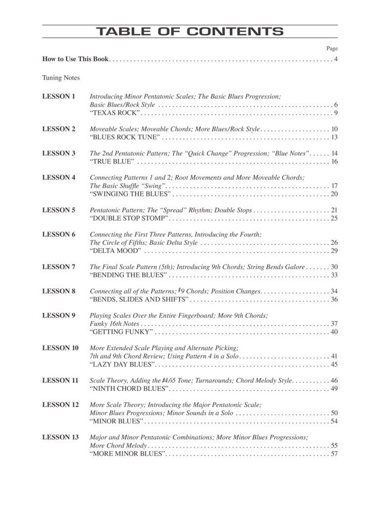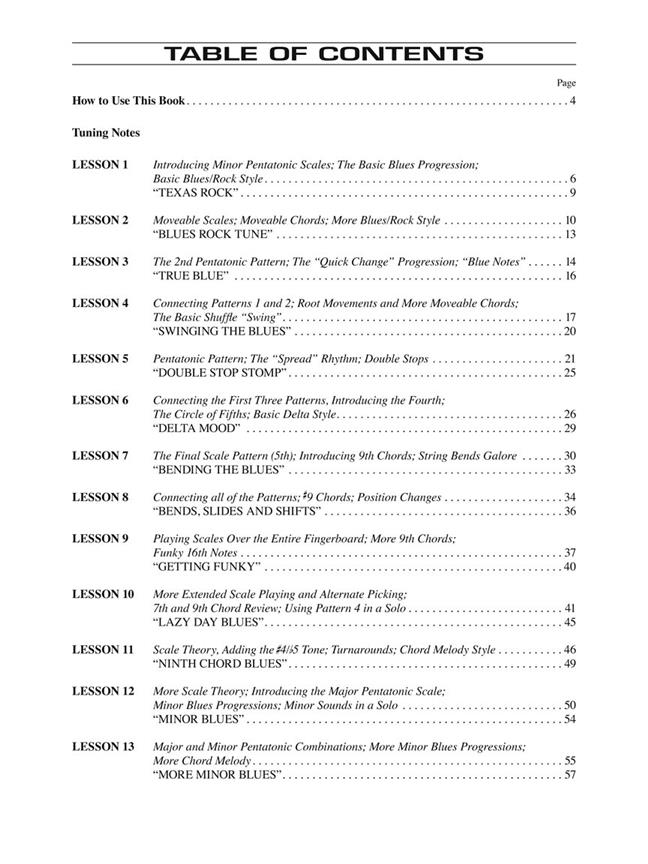 This comprehensive source for learning blues guitar is designed to develop both your lead and rhythm playing. Blues styles covered include Texas, Delta, R and B, early rock and roll, gospel and blues/rock. The book also features: 21 complete solos - blues chords, progressions and riffs - turnarounds - movable scales and soloing techniques - string bending - utilizing the entire fingerboard - using 6ths - chord-melody style - music notation and tab - audio with leads and full band backing - video lessons - and more. This second edition now includes audio and video access online!