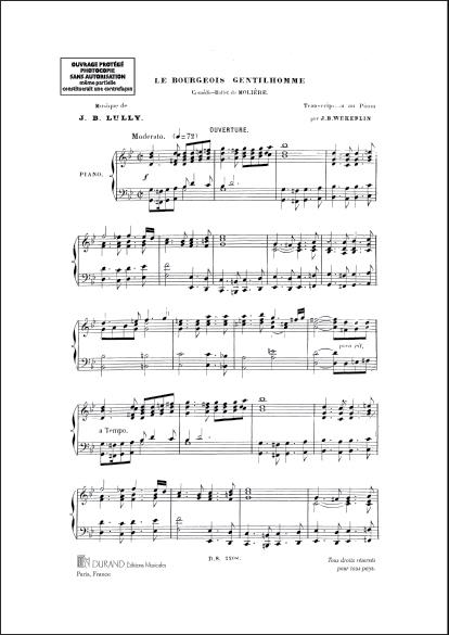 Bourgeois Gentilhomme Chant/Piano LULLY JEAN-BAPTISTE