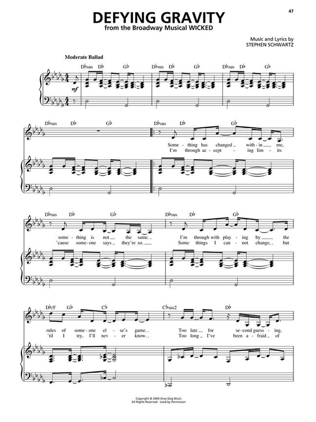 Cette collection comporte 23 favoris de Broadway, le tout dans des arrangements Vocal / Piano, et comprend des chansons telles que Et je vous dis que je ne vais, Cabaret, Defying Gravity, Edelweiss, I Dreamed a Dream, ici sur mon propre, Quelqu'un comme vous et plus.