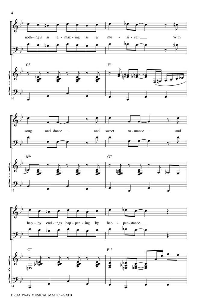 Les années depuis 2000 ont brillé de magie de Broadway ! Des reprises et comédies musicales juke-box à une nouvelle génération de compositeurs, le public a été ravi par les productions éblouissantes de Billy Elliott, Into the Woods (film), Jersey Boys, Legally Blonde, Mary Poppins, Memphis, Newsies, Rent, Something’s Rotten, Spring Awakening. Dynamisez votre concert avec cette célébration de 16 minutes du théâtre musical contemporain en trois sections flexibles ! Parmi ses chansons figurent : Electricity, Into the Woods, Let’s Hang On, Mamma Mia, A Musical, Seasons of Love, Seize the Day, So Much Better, The Song of Purple Summer, Steal Your Rock 'n Roll, Supercalifragilisticexpialidocious.