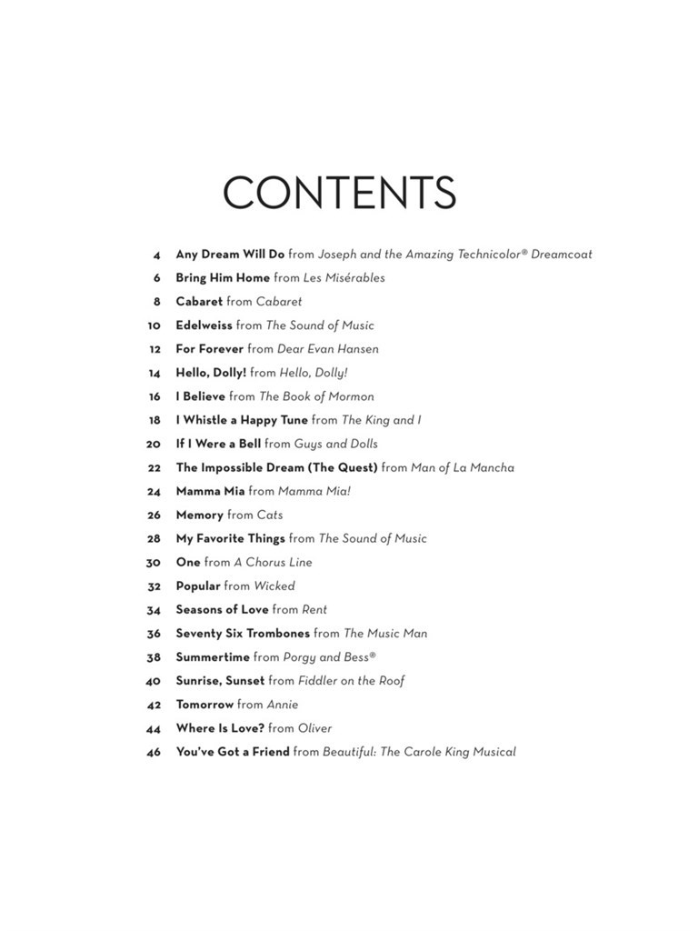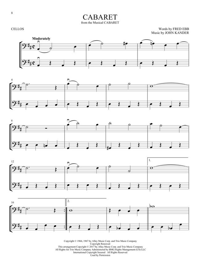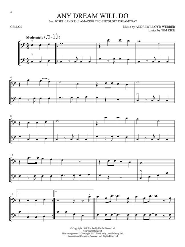 22 showstoppers in easy duet arrangements for two instrumentalists are featured in this collection, including: Any Dream Will Do - Bring Him Home - Cabaret - Edelweiss - For Forever - Hello, Dolly! - I Believe - Memory - One - Popular - Seasons of Love - Seventy Six Trombones - Tomorrow - Where Is Love? - You've Got a Friend - and more. Arrangements work for two cellos or can be used with the other string titles from this series. 22 showstoppers in easy duet arrangements for two instrumentalists are featured in this collection. Arrangements work for two Cellos or can be used with the other woodwind titles from this series.