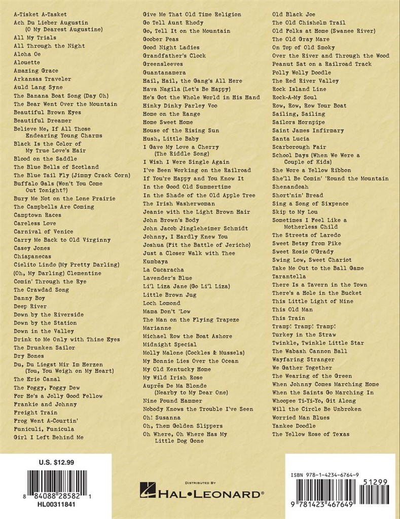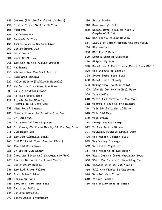 Compilation de 148 chansons Folk arrangées pour piano, voix, guitare (diagrammes d'accords)