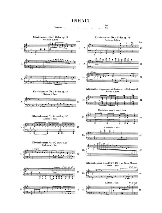 Cadenzas In The Piano Concertos BEETHOVEN LUDWIG VAN