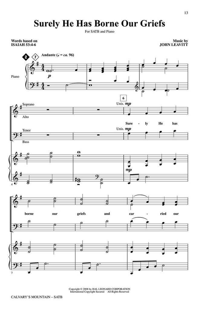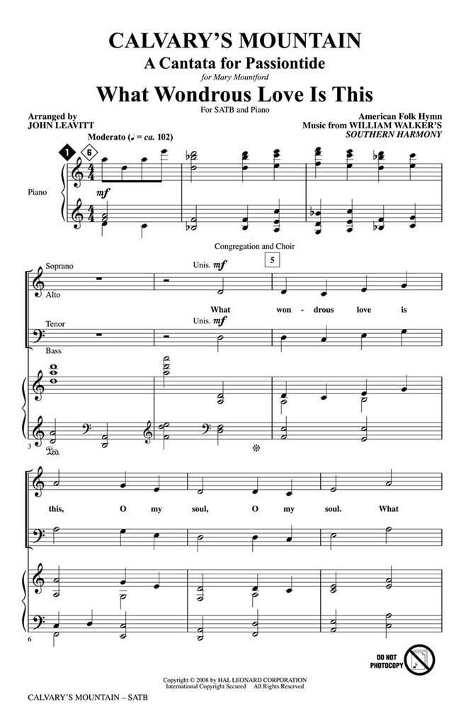 John Leavitt a créé une cantate conçue pour le Carême et la Semaine Sainte. Les titres incluent : Quel amour merveilleux est ça, Si tu y étais, sûrement il a supporté nos chagrins, hélas ! Et mon Sauveur a-t-il saigné et Jésus est mort sur la Montagne du Calvaire. Disponible séparément : SATB, CD ChoirTrax, partition et parties de l’orchestre Chamnber (fl 1/2, ob, cl 1/2, bn, perc 1 et 2, hp, str :88442), CD Preview CD, Preview Pak. Durée : environ 30:00.