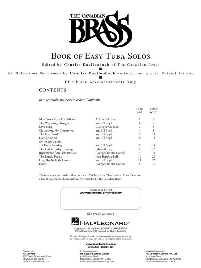 Tuba pièces éditées et enregistrées par virtuose Canadian Brass Charles Daellenbach, pièces pour piano enregistrées par Patrick Hansen. Arrangements par Bill Boyd. CD d'accompagnement comprend des spectacles complets et les accompagnements.