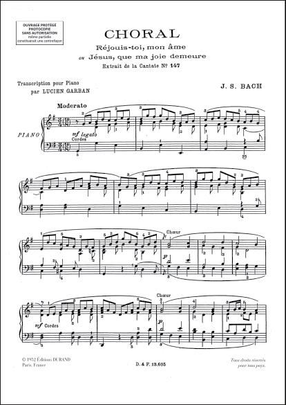 Cantate 147 Choral Piano (Jesus Que Ma Joie Demeure) BACH JOHANN SEBASTIAN