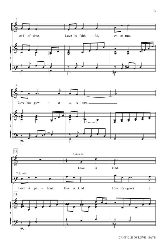 Utilisations : Général, Mariages, Saint-Valentin Écriture : I Corinthiens 13 Précieuses Écritures est accompagnée d’une musique expressive avec cet hymne distinctif, idéal pour les mariages ou les lieux de culte. Célébrant la gloire de l’amour et décrivant ses nombreuses bénédictions dans nos vies, la belle mélodie fait des duos avec une partie de piano lyrique et un délicat obbligato de flûte. L’utilité générale du texte rend cela approprié à tout moment de l’année. Durée : environ 4:31.