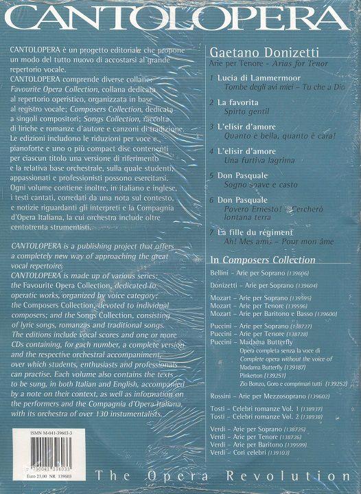 With standard vocal/piano aria editions, plot notes and English translations, and with a CD of full performances and orchestral accompaniments. Arias from: Lucia di Lammermoor - La Favorita - L´Elisir d´Amore - Don Pasquale - La Fille du Régiment .