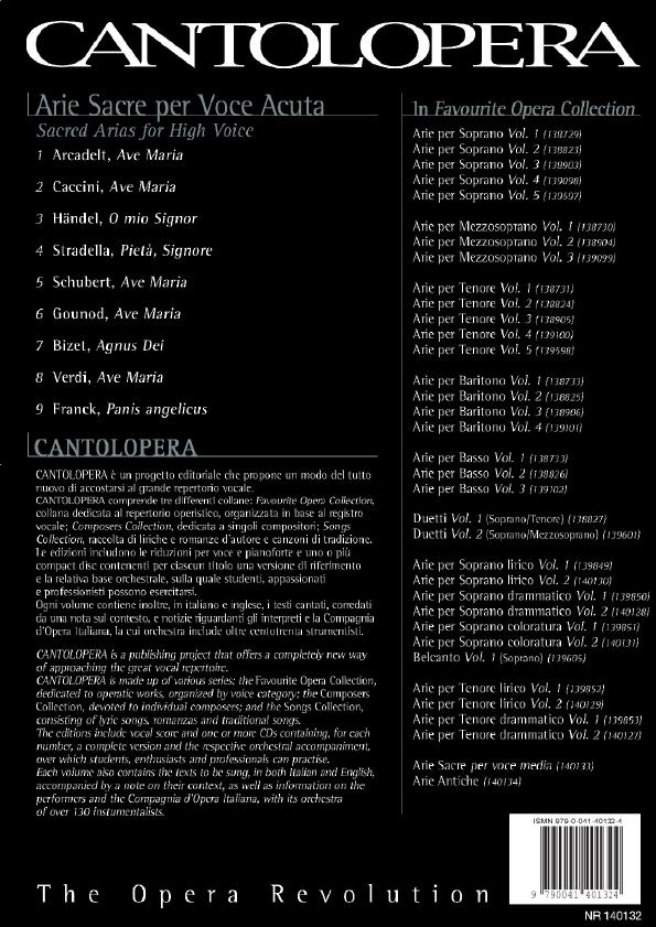 1 Jakob Arcadelt, Ave Maria 2 Giulio Caccini, Ave Maria 3 Georg Friedrich Händel, O mio Signor 4 Alessandro Stradella, Pietà, Signore 5 Franz Schubert, Ave Maria 6 Charles Gounod, Ave Maria 7 Georges Bizet, Agnus Dei 8 Giuseppe Verdi, Ave Maria 9 César Franck, Panis angelicus