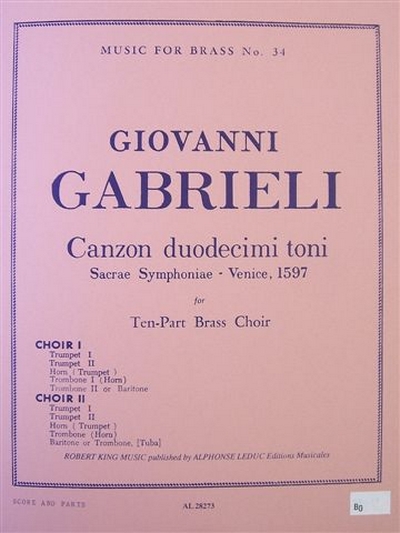 Transcribed by popular brass arranger, Robert King, this edition of Giovanni Gabrieli 's Canzon Primi Toni provides an exciting performance piece for a large Brass Ensemble. Being one of the most influential musicians during the shift from the Renaissance to the Baroque era, it is no secret that the composer leant himself primarily to vocal and sacred works. However, his Canzon Primi Toni, as part of the composer's Sacred Symphony, represents an important turn not only in the composer's career, but in musical history. Composed in 1597, this piece paved the way to what would soon become the newBaroque concerto style, which remains popular to this day. King 's arrangement of this historical work is indispensable for Brass Ensembles.