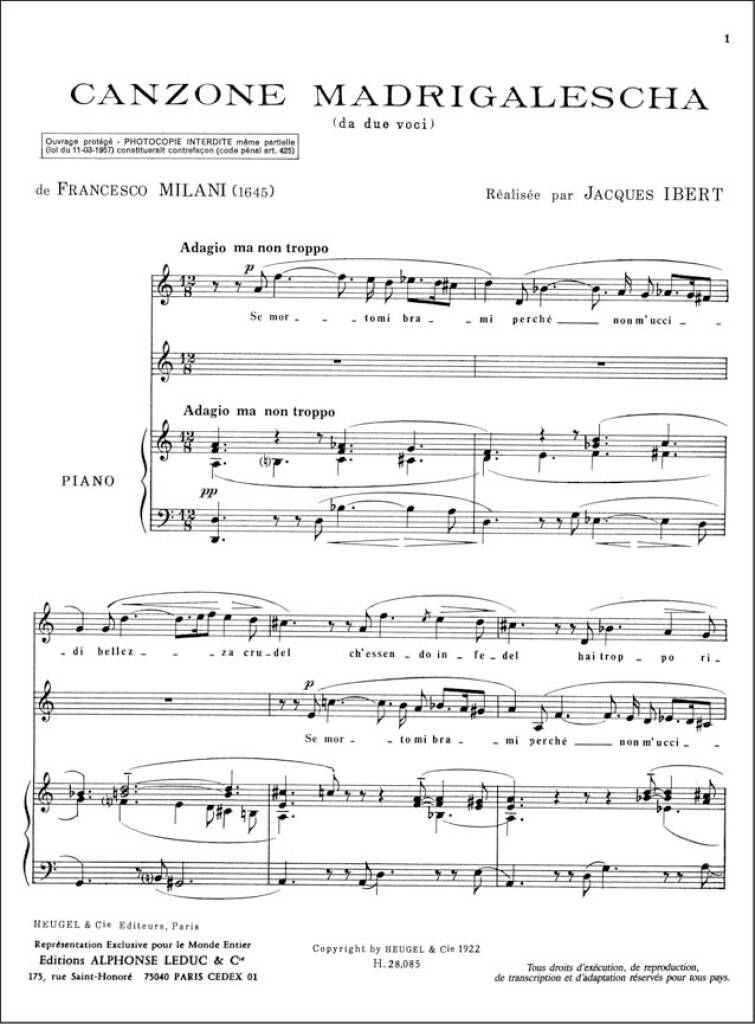 Canzone Madrigalescha MILANI / IBERT