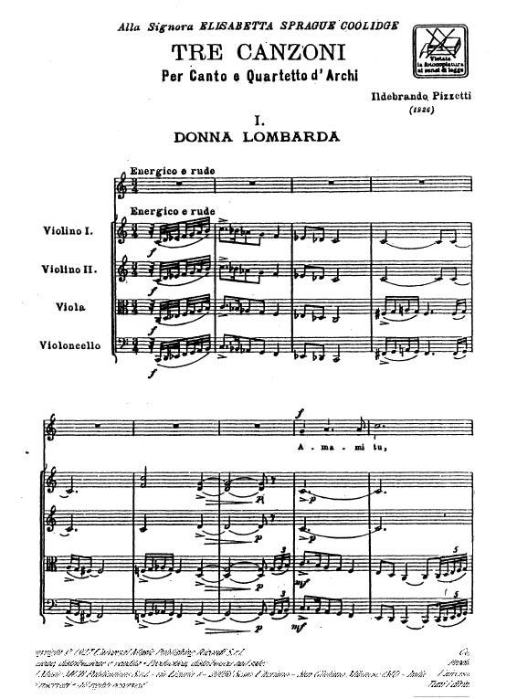 Canzoni Su Poesie Italiane (3) Per Canto E Quartetto D’Archi PIZZETTI ILDEBRANDO