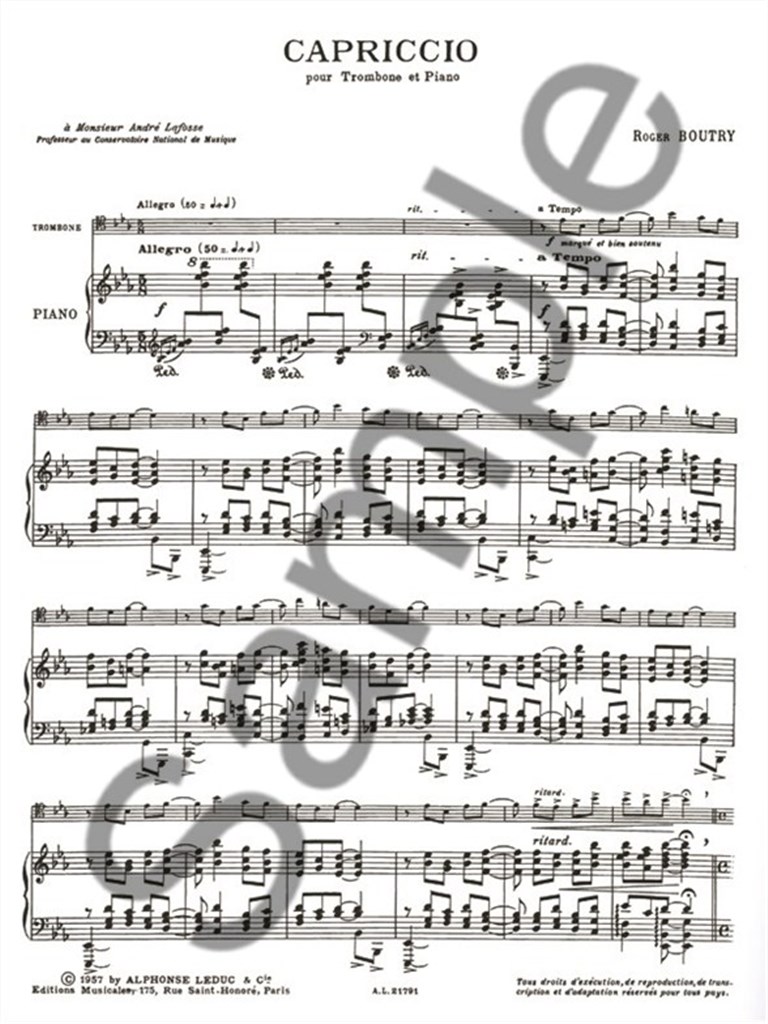 A glorious and expressive work by contemporary French composer Roger Boutry. Capriccio is set for Trombone and Piano accompaniment.