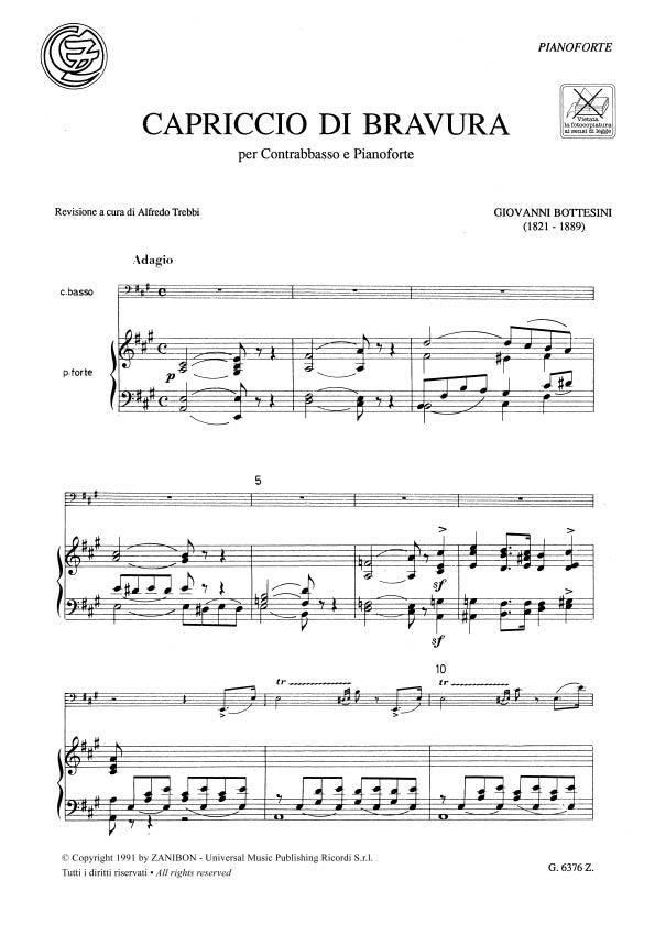 Capriccio Di Bravura Per Contrabbasso E Pianoforte BOTTESINI GIOVANNI