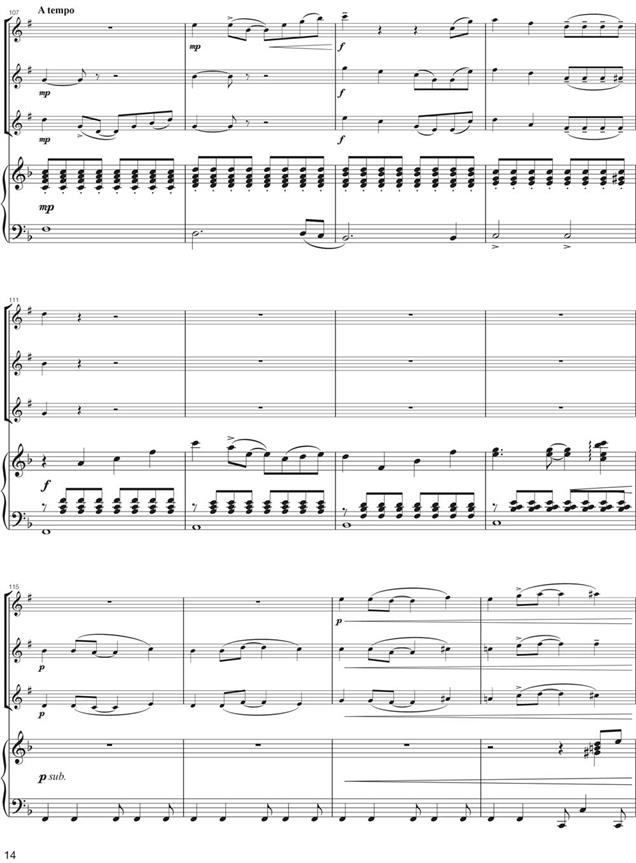 Le terme de capriccio désigne des compositions qui ne sont pas strictement liées à des conventions « classiques » et suivent leur propre inspiration. Le compositeur Pascal Proust se joue ici avec humour des attentes habituelles de l'auditeur : tantôt il confronte le lent groove swing du piano au rythme de barcarole des vents, tantôt il écrit une musique à la croisée du tango et du rock pur. Une pièce de concert efficace et variée pour quatre musiciens ambitieux !