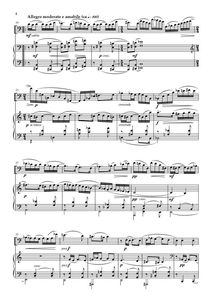 Work for cello (or viola) and piano, commissioned by the "Sommets Musicaux de Gstaad" Festival Adagio liberamente, Allegro moderato