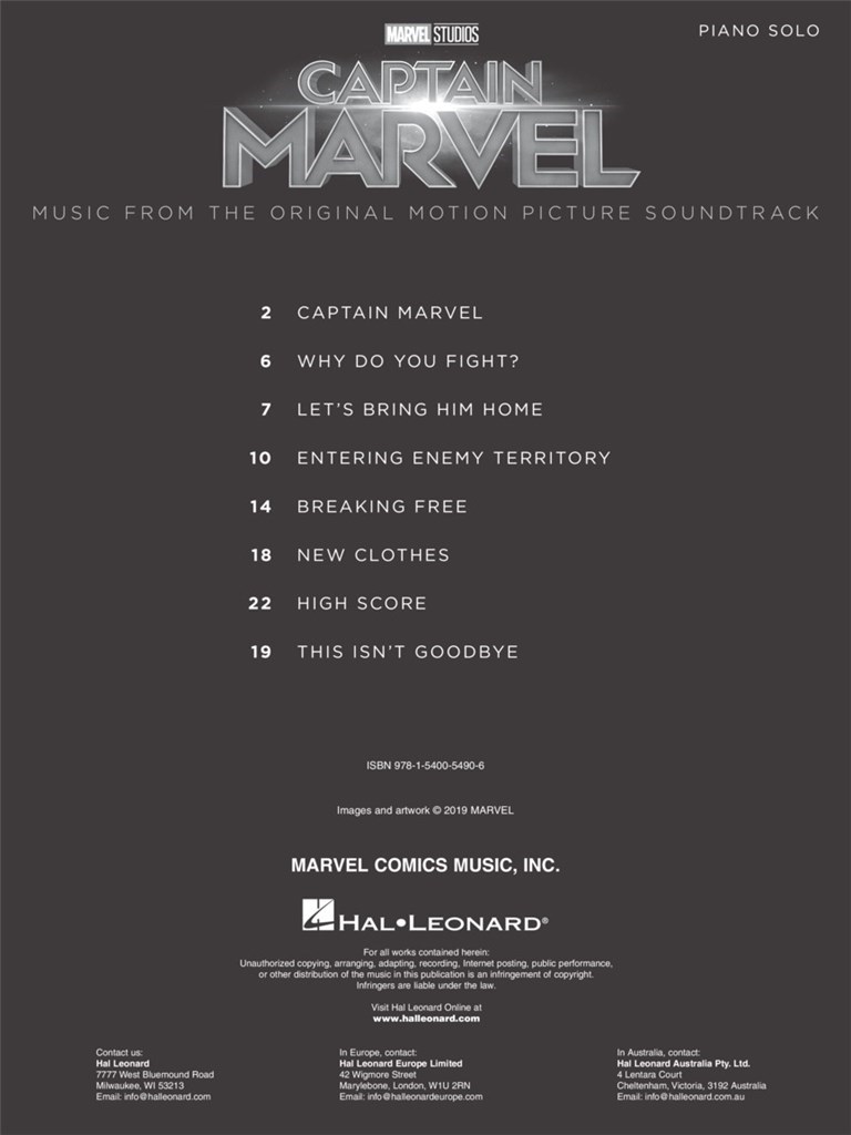 Voici 9 morceaux arrangés pour piano solo, extraits de la bande-annonce composée par Pinar Toprak pour le film des Studios Marvel.