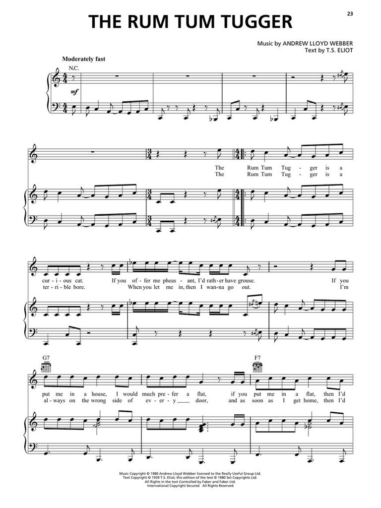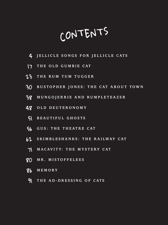 Piano/vocal selections with the melody in the piano part, with chord symbols, guitar chord frames, and full lyrics for 13 songs from the 2019 movie adaptation of Andrew Lloyd Webber's musical based on Old Possum's Book of Practical Cats by T.S. Eliot. Includes the Taylor Swift/Andrew Lloyd Webber collaboration Beautiful Ghosts along with: The Ad-dressing of Cats · Bustopher Jones: the Cat About Town · Gus: the Theatre Cat · Jellicle Songs for Jellicle Cats · Macavity: the Mystery Cat · Memory · Mr. Mistoffelees · Old Deuteronomy · and more.