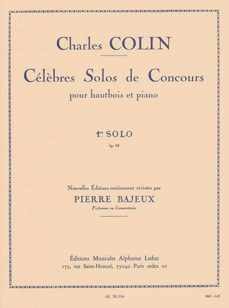 Celebres Solos De Concours N01 Op. 33 Hautbois Et Piano COLIN / BAJEUX