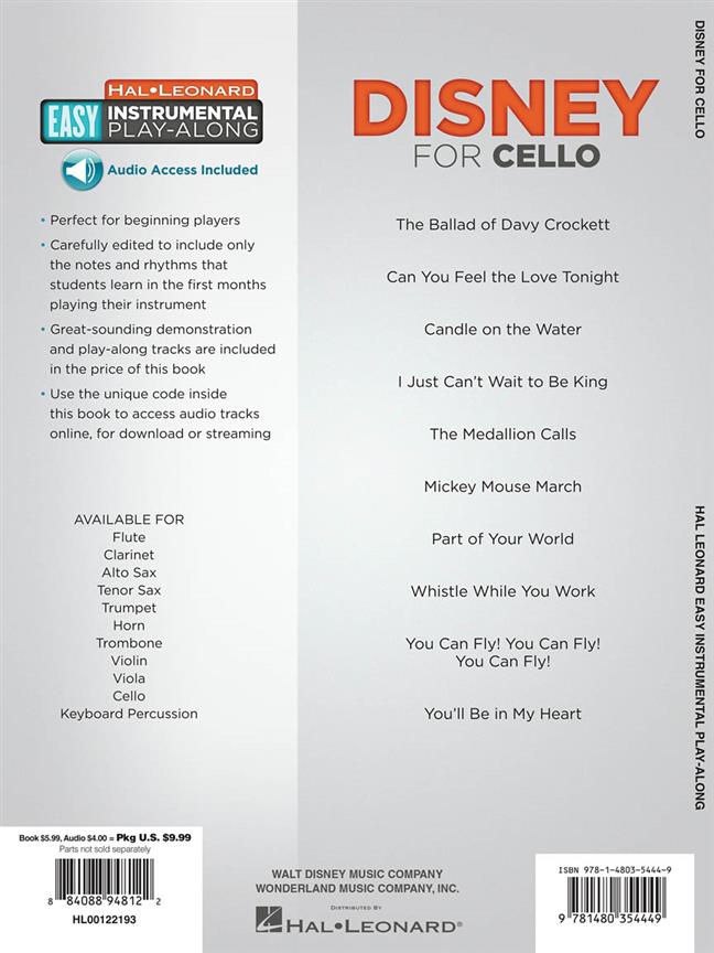 Même les novices se font entendre bien avec Cello facile Instrumental Play-Along: Disney, mettant en vedette 10 chansons soigneusement sélectionnés et agencés pour instrumentistes de première année.