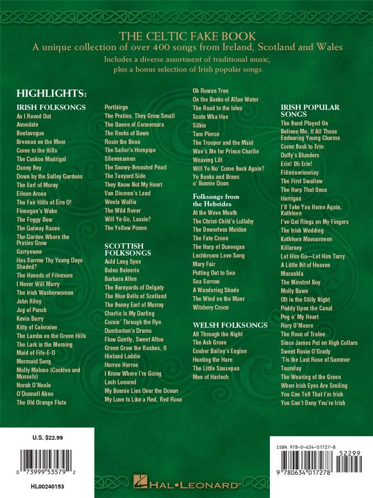 Edition c. La popularité de la musique celtique a explosé au cours des dix dernières années en raison de la recrudescence des instruments folk, danse celtique et la culture irlandaise globale. Cette étonnante collection réunit plus de 400 chansons d'Irlande, Ecosse et du pays de Galles - complet, avec des paroles gaéliques, le cas échéant - et un guide de prononciation. Titres comprennent: à travers l'ouest de l'océan o avec mon amour, j'irai o autel Isle o ' la mer o Auld Lang Syne o Avondale o The Band Played On o o Barbara Allen bénédiction de la route o o The Blue Bells of Scotland The Lass Bonniest o o A Bunch of thym The Chanty que captif le o de la sorcière Colomb était un irlandais o o Danny Boy de Duffy bourdes o Erin ! OH Erin ! o o de sillage du père Murphy o Finnegan Galway Piper o la fille j'ai laissé derrière moi o a quelqu'un ici vu Kelly o je sais où je suis Irish Rover Goin ' o o Loch Lomond o o Molly Malone My Bonnie trouve au-dessus de l'océan o mon o Rose irlandais sauvage les rives du Amerikay o The Sons of Liberty o qui est un o berceuse irlandais lorsque irlandais Ey...