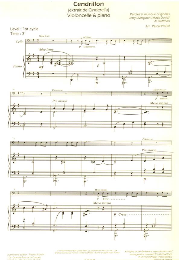 Cendrillon – Extraits De La Bande Originale Du Film De Walt Disney LIVINGSTONE JERRY / MACL DAVID / AL HOFFMAN